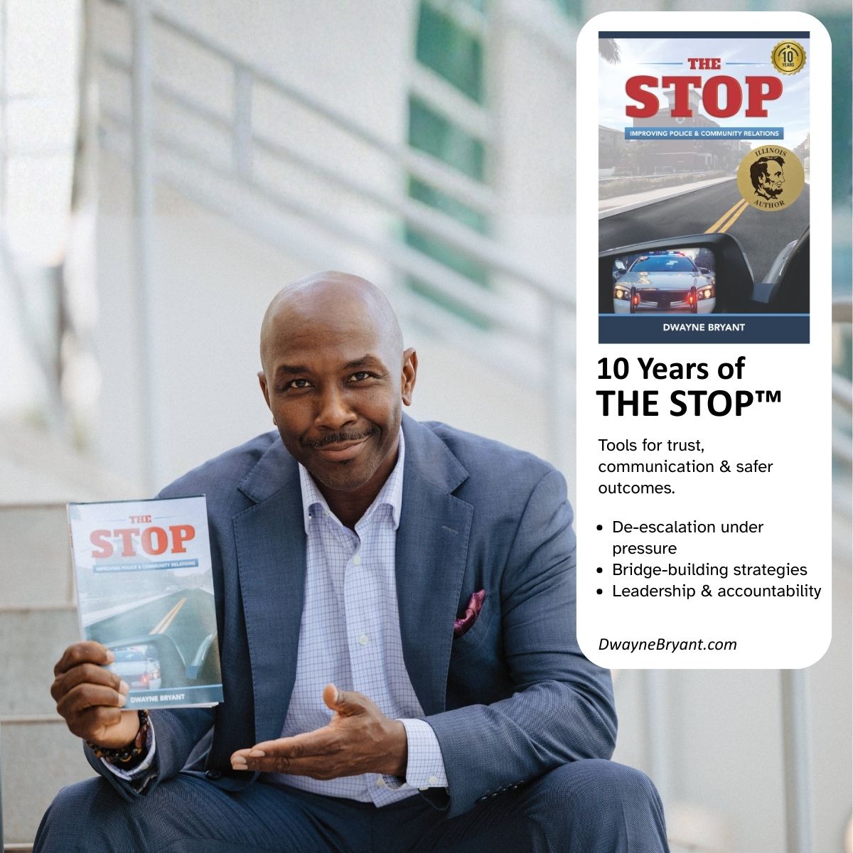 Sought-after international transformational speaker, author, and master storyteller, Dwayne Bryant delivers a timely message in The STOP- Improving Police and Community Relations™. With the recent increase of U.S. police officers involved in shootings during routine stops, Bryant wrote his book to educate youth to stop, observe, and reflect during an encounter with law enforcement.